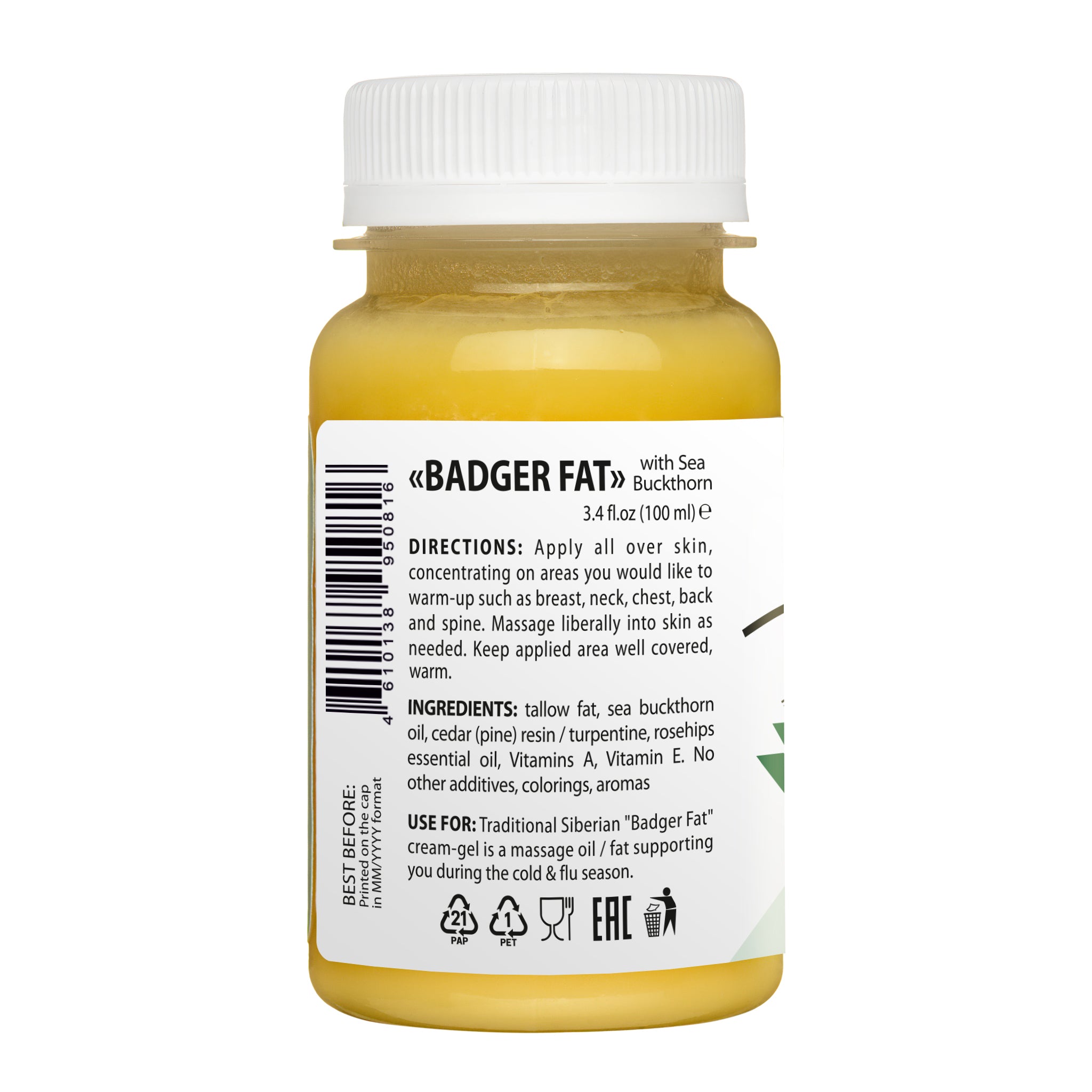 Badger fat cream is a classic Siberian topping that contains sea buckthorn oil, pine resin, and essential vitamins for rich satin gloss and healing qualities. Sea buckthorn oil and vitamins are known to promote one’s health – great for use in extreme conditions or just during cold winters when this cream-gel can be applied topically for moisturized skin.