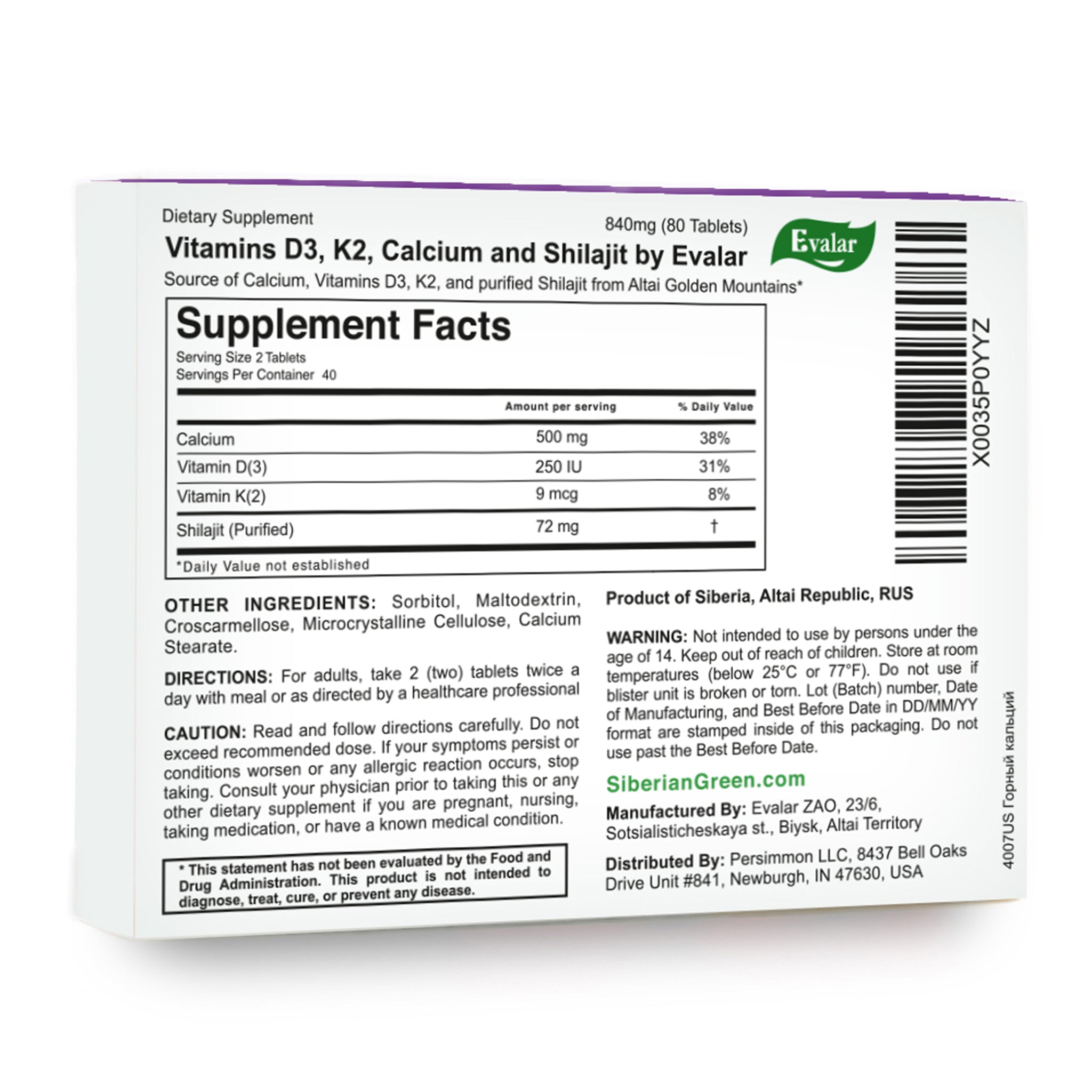 Formulated with plant-based Calcium, Vitamins D3, K2, and pure Altai Shilajit, the supplement supports healthy bones, teeth, and immune function. Each tablet contains nature-sourced nutrients with high bioavailability and proven synergistic benefits.