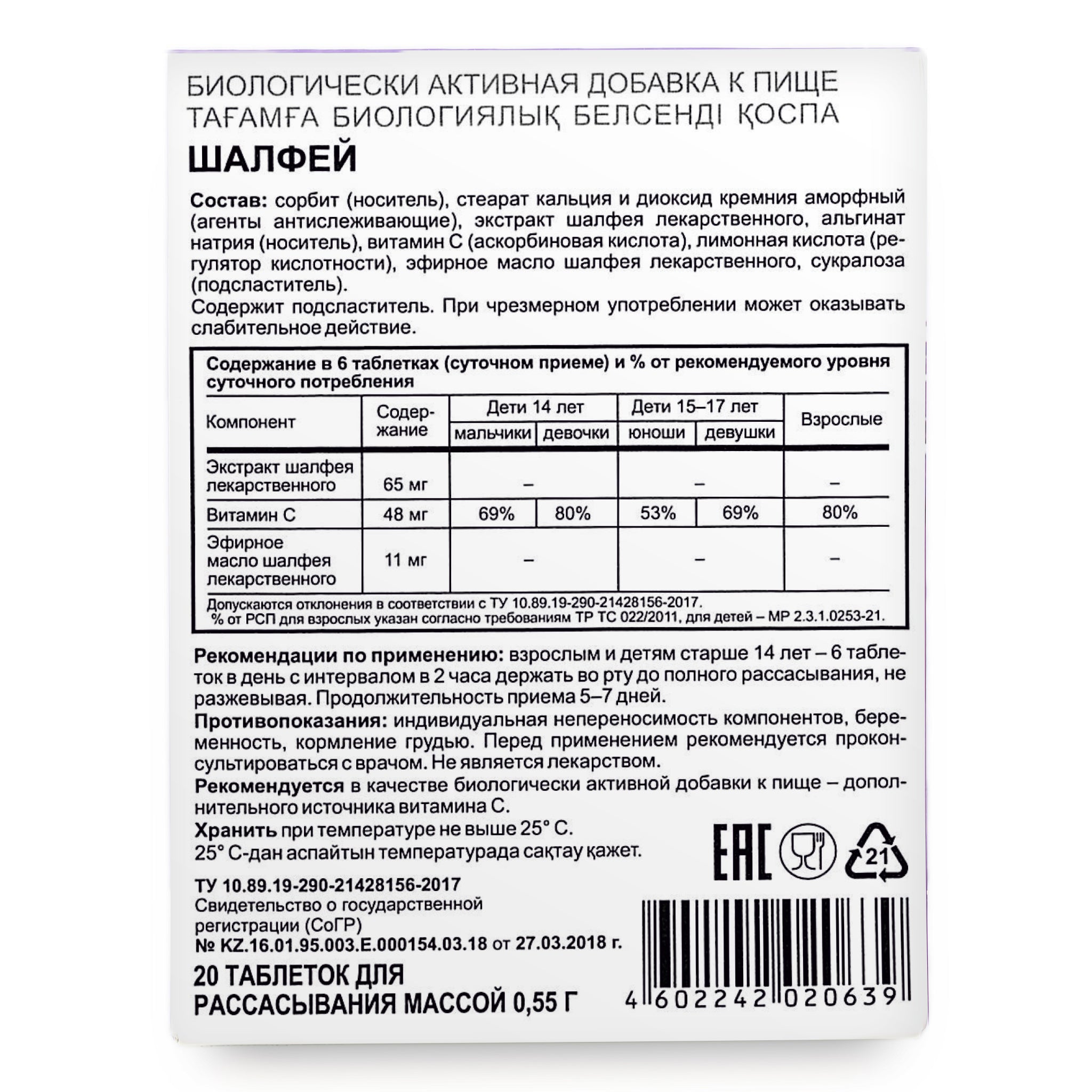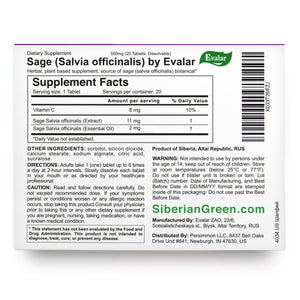 Sage Salvia officinalis Herb by Evalar Dissolvable 20 Tabs