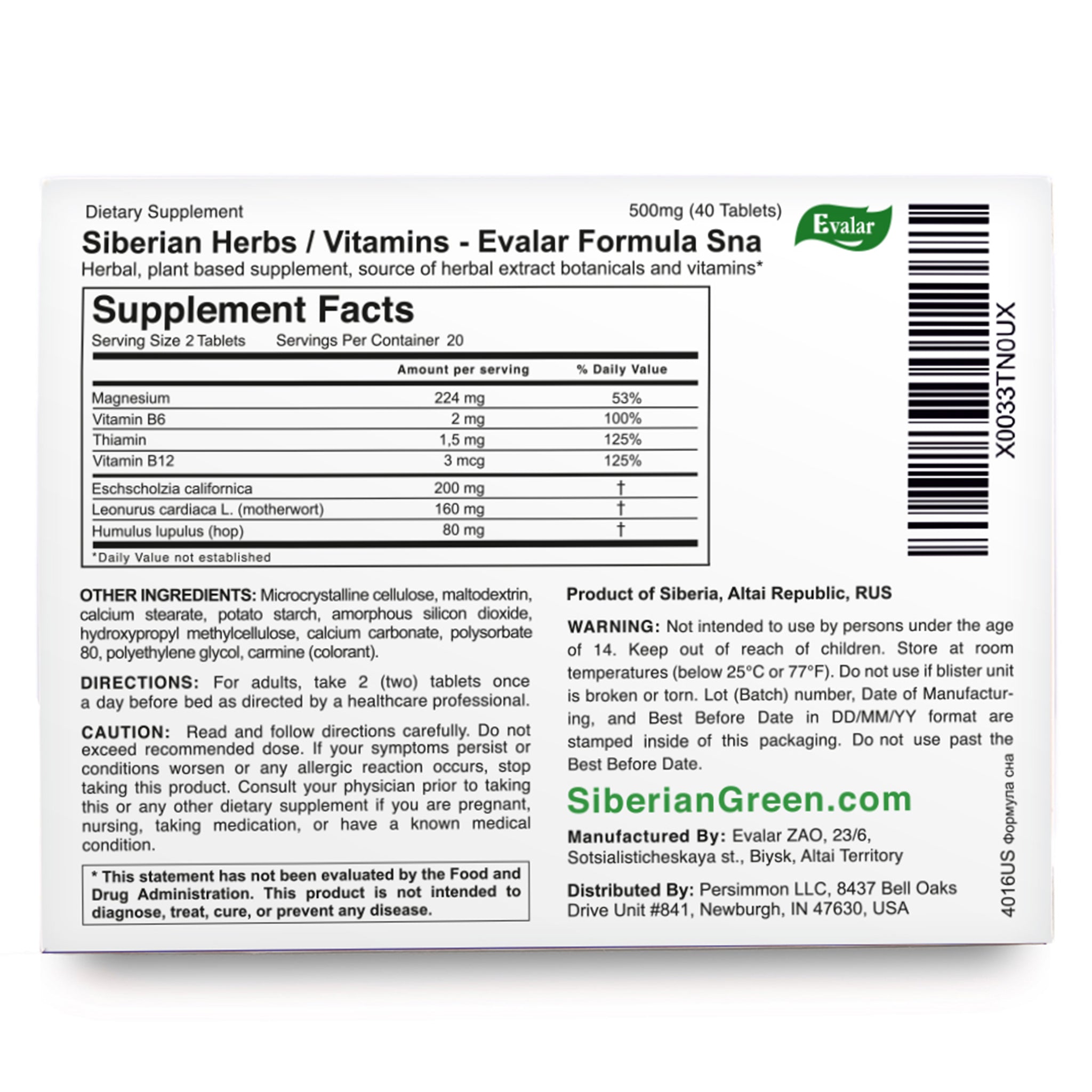 Siberian Herbs Vitamins by Evalar Formula 40 Tabs