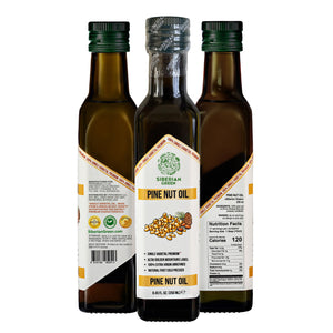 Savor the untainted nature of Siberia with Siberian Green Pine Nut Oil, single varietal extra virgin oil extracted from the wild Pinus sibirica nuts from the Altai Golden Mountains. The first cold press retains the delicate flavor, antioxidants, and balance of omega-3 and omega-6 fatty acids, which aid in appetite control, heart and brain health, and skin health.