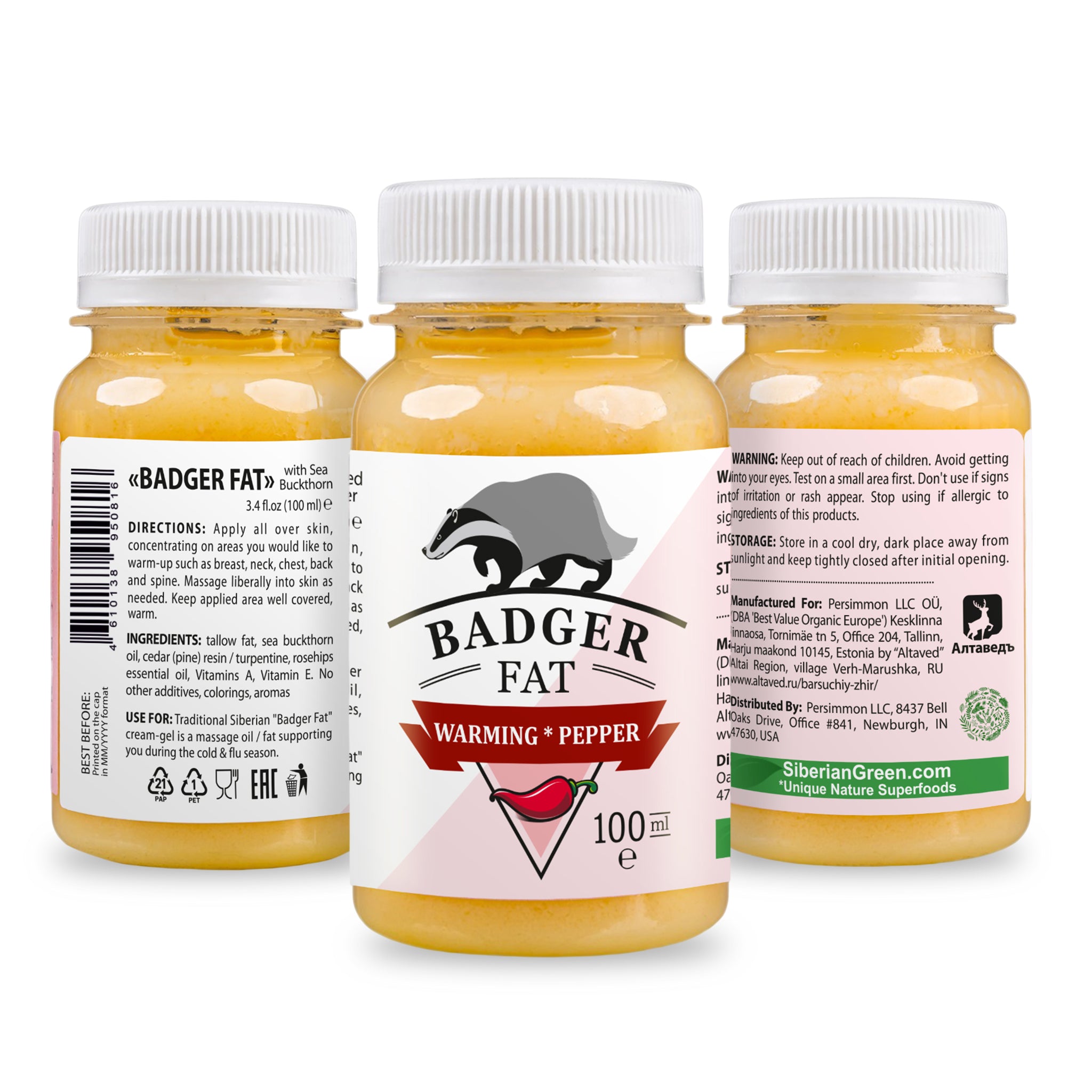 Experience the health benefits of badger fat with our Badger Fat Cream, enhanced with eucalyptus oil, mint, and red pepper for added warming effects. Comprising of 100% rendered badger oil, this cream aids circulation, alleviates tension, and warms the body during colder climates or seasonal discomforts.