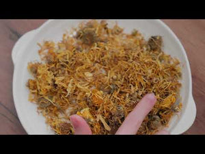 Las flores y los pétalos de caléndula siberiana se recolectaron en prados prístinos, remotos y no contaminados del sur de Siberia, en las estribaciones de las montañas doradas de Altái. Sin ningún añadido: 100 % natural. Empaquetadas con cuidado para que conserves todas las flores y puedas disfrutar de todos los beneficios y de un aroma delicioso y único.